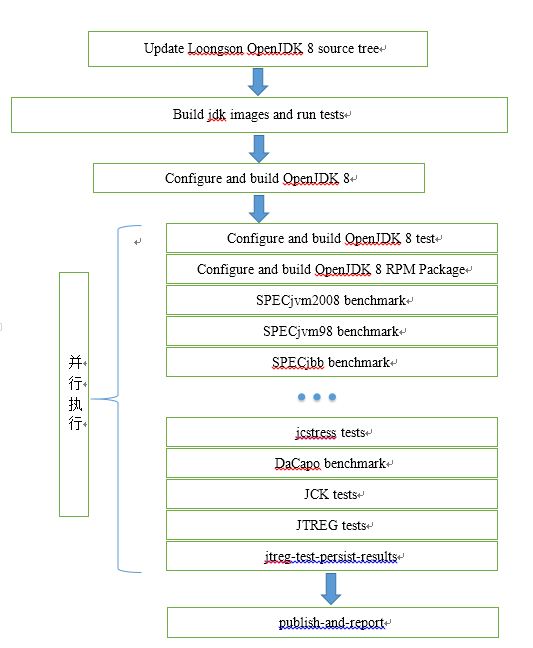 ½ÓÏÂÀ´ÒÔÒ»¸ö8188ccÍþÄá˹OpenJDK 8µÄ²âÊÔʵÀý£¬½éÉÜÒ»ÏÂJenkinsÔÚ8188ccÍþÄá˹ƽ̨ÉϵÄÓ¦Óá£8188ccÍþÄá˹OpenJDK 8ÔÚJenkinsÉϵIJâÊÔÁ÷³Ì¿ò¼ÜÈçͼ1Ëùʾ¡£